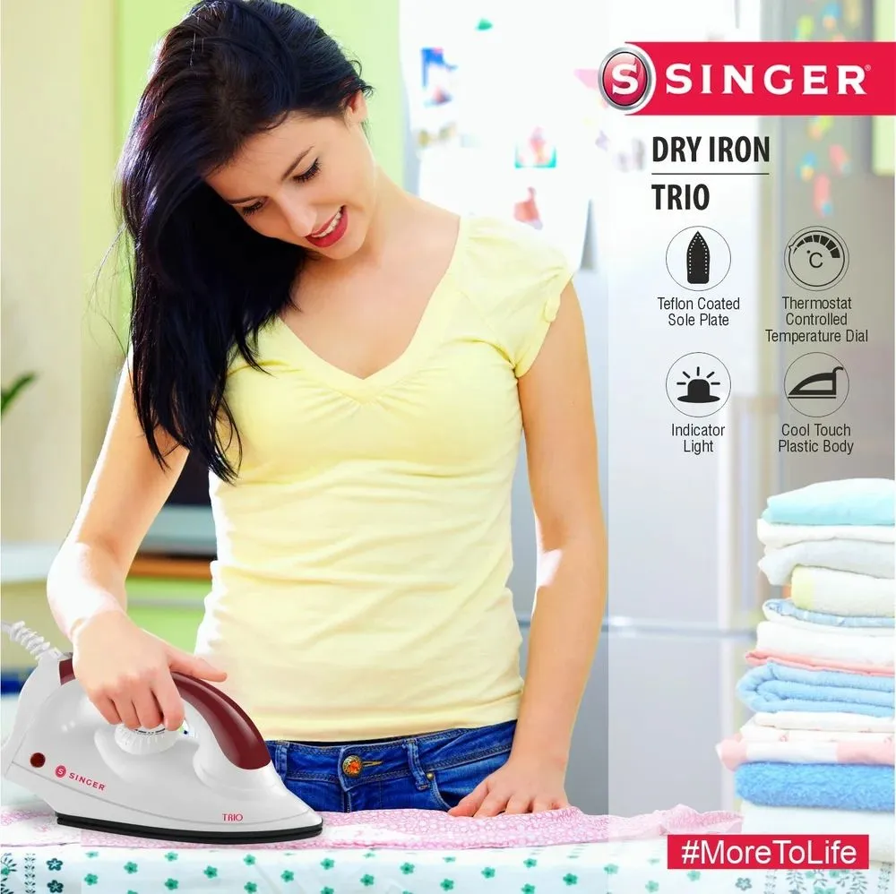 Singer TRIO 1000-Watt Dry Iron with Non-Stick Coated Soleplate – White