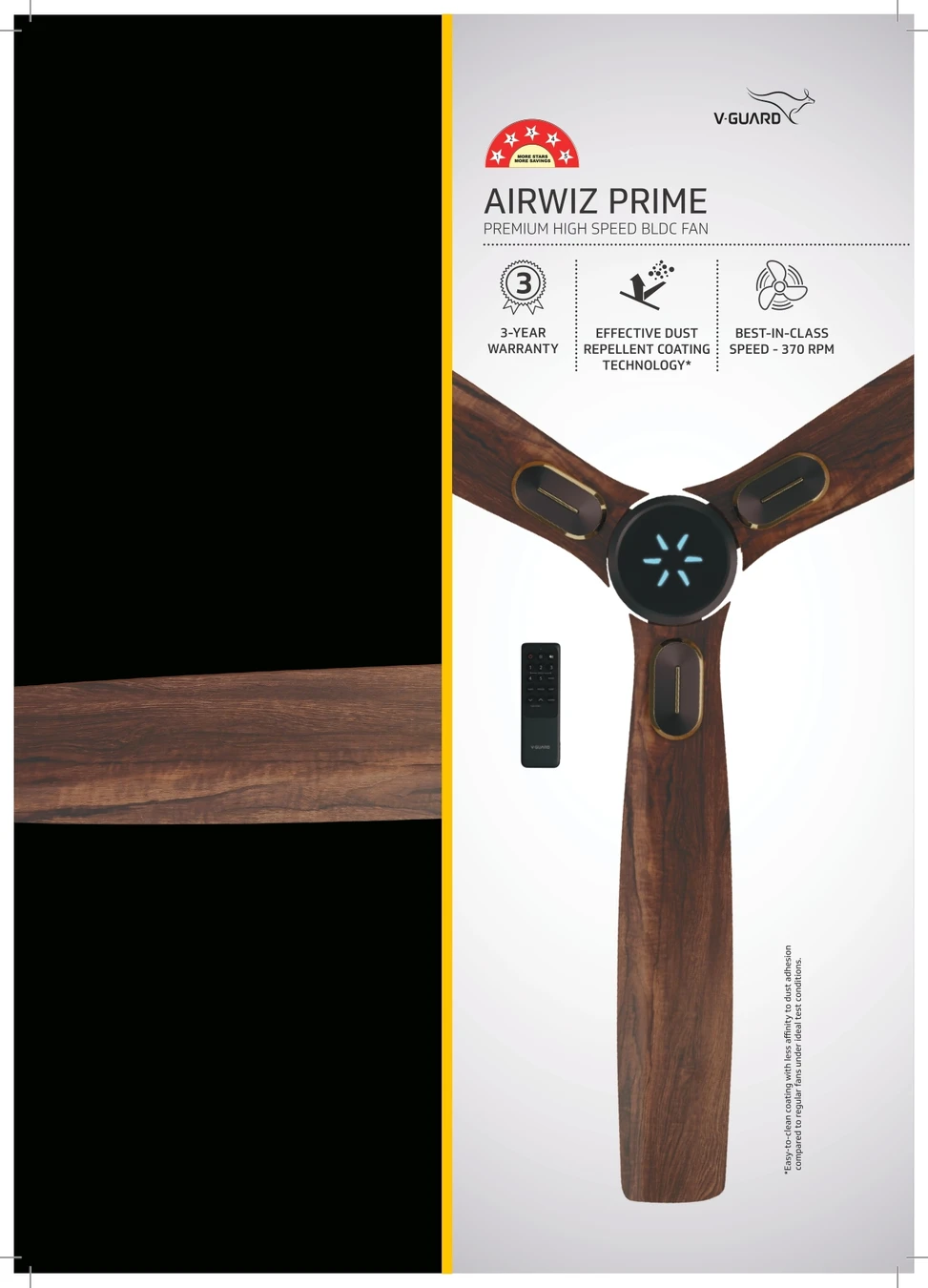 Looking for fan understands your space, simplifies your lifestyle, and blends into your everyday routine without demanding attention? V-guard presents AIRWIZ PRIME, a range of high-speed premium fans from V-guard. With its high-speed BLDC motor, stylish finish, and intuitive interface, this fan reimagines comfort for the contemporary home. Lets have a look at its features. Delivering a best-in-class speed of 370 RPM and an air delivery of 225 m³/min, it ensures that comfort reaches every corner of the room, quickly and consistently with just 35 W power consumption. With an impressive operating range from 90V to 300V, it stays steady and reliable when it matters most. The intelligent speed control allows you to fine-tune airflow as per your mood. But the real beauty of AIRWIZ PRIME lies in its thoughtful features. The fan’s innovative user interface improves the way you interact with it. And with the remote control always within reach, managing settings becomes effortless. You can even set timers of 4 or 8 hours, ideal for overnight use or when you want to come back to a cool space without leaving it running all day. Designed to work across seasons